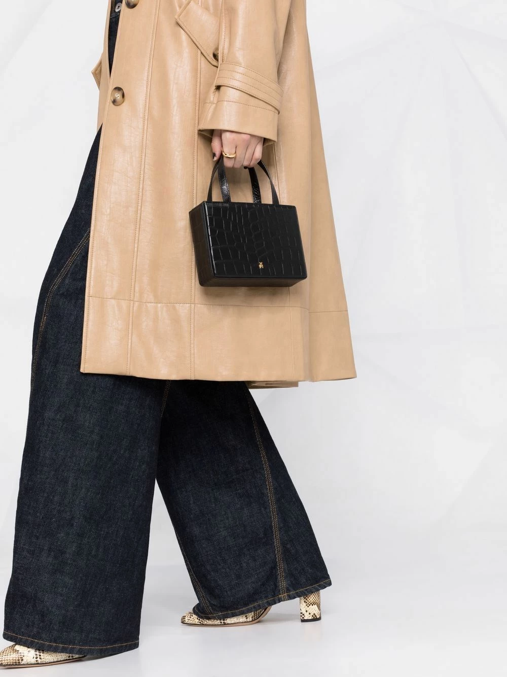 Crafted in Italy, this black Amini Gilda mini-bag stands out thanks to the all-over embossed crocodile effect. The piece is designed with a rectangular shape and features a main internal compartment while the top of the bag fastens with an invisible magnetic detail.