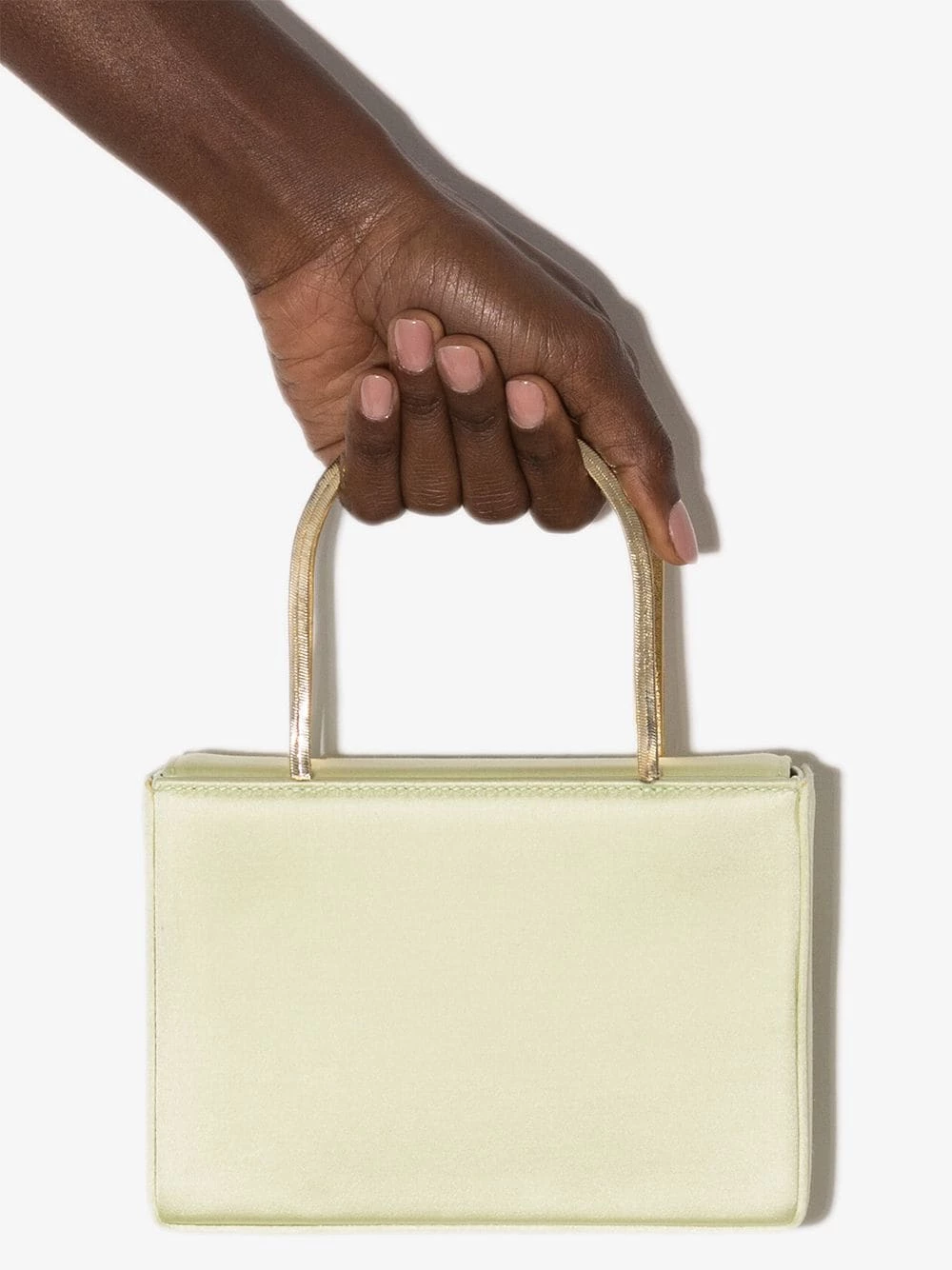 Amina Muaddi’s AW21 collection reflects the brand’s flamboyant and joyful approach to accessories, with bold prints and eye-catching details. The Amini Hensen bag is crafted from satin and features refined gold-tone handles that contrast with the sharpness of its rectangle shape.