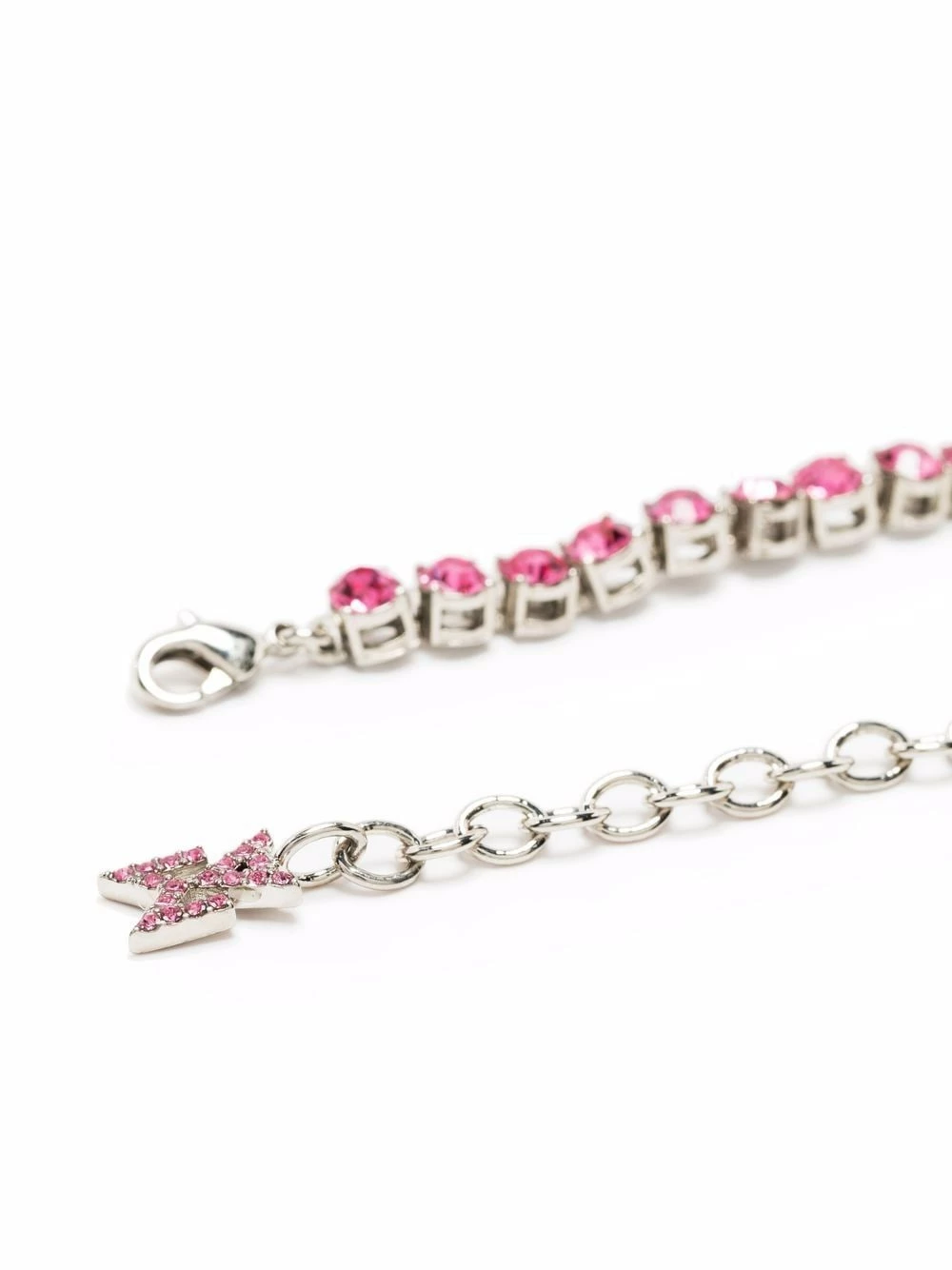 Effortless glamour combined with impeccable craftsmanship define Amina Muaddi’s designs as showcased in these perfectly formed tennis bracelet that dazzle with their all-over pink crystal embellishment.