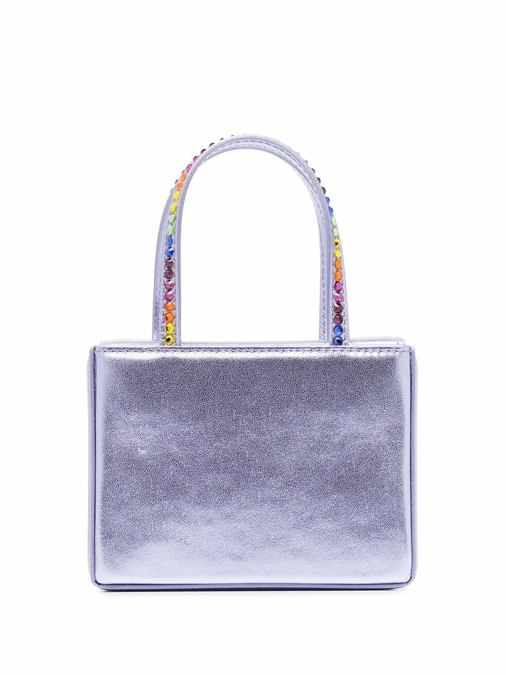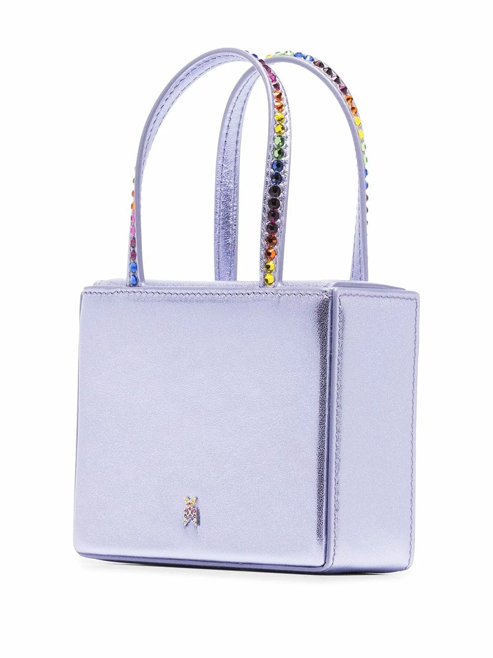 Following three key design factors of the Amina Muaddi brand; effortless glamour, impeccable craftsmanship and timeless style, this Gilda super mini bag is a fitting piece. Featuring a logo plaque to the front, metallic finish and crystal embellishment, this bag showcases the result of a refined design process, to create a complex item that achieves simplicity at first glance.