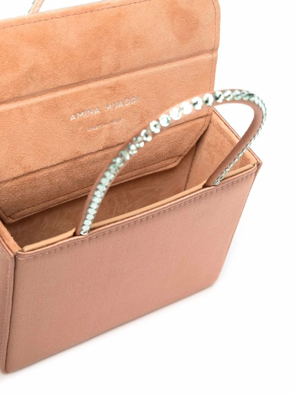 Following three key design factors of the Amina Muaddi brand; effortless glamour, impeccible craftsmanship and timeless style, this Super Amini Gilda mini bag is a fitting piece. Featuring a logo plaque to the front, satin finish and crystal embellishment, this bag showcases the result of a refined design process, to create a complex item that achieves simplicity at first glance.